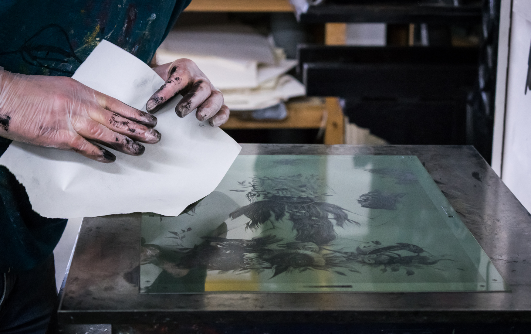 Here’s some preview shots of a stunning new etching edition we are extremely excited to be collaborating on with the artist Miss Van