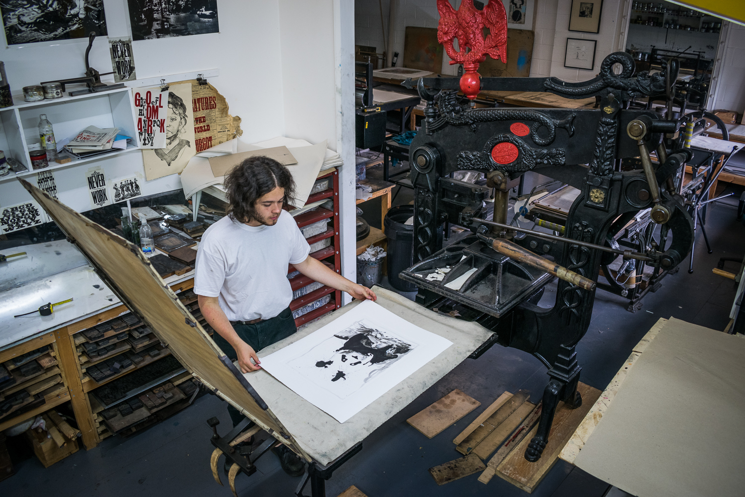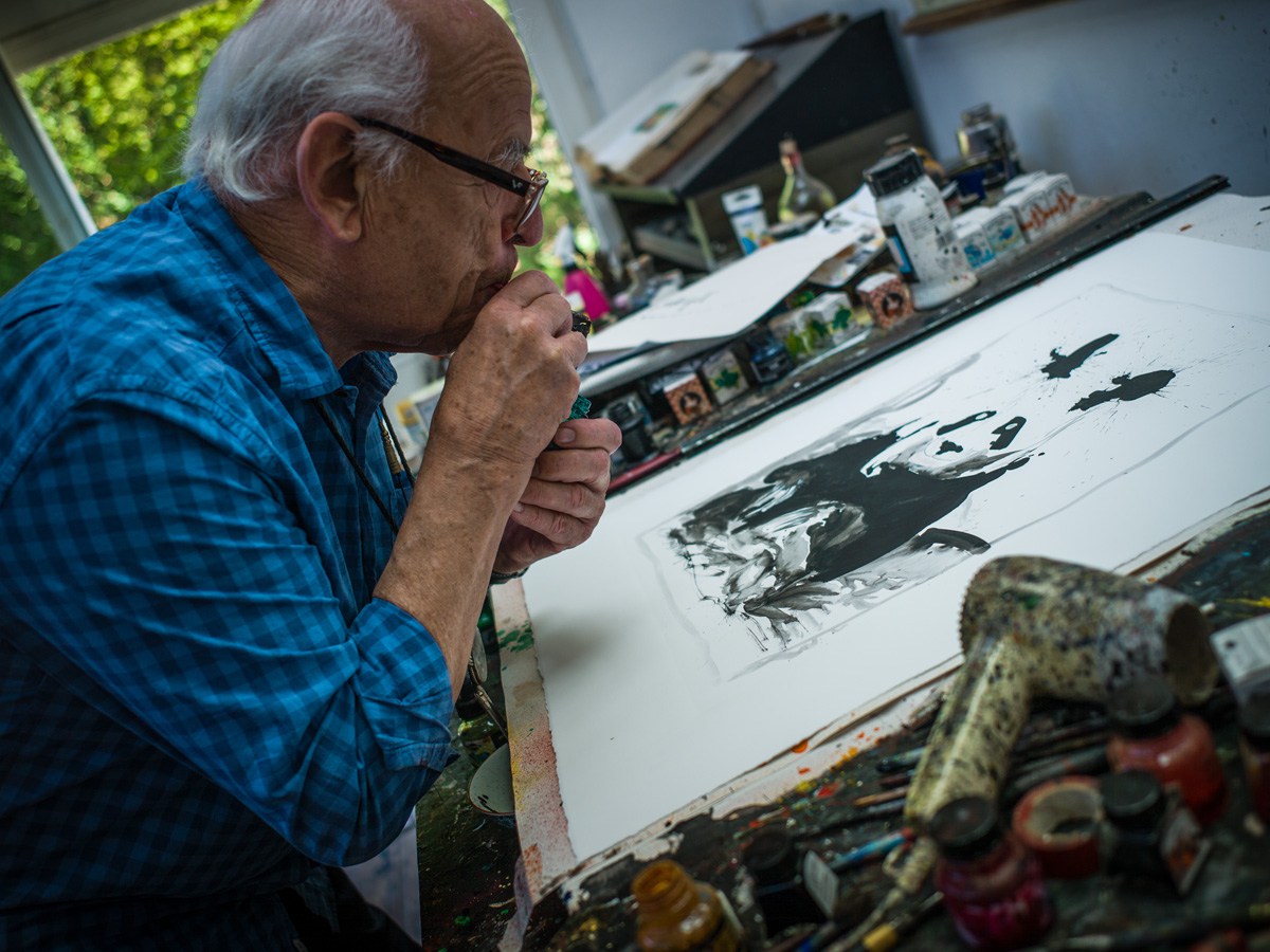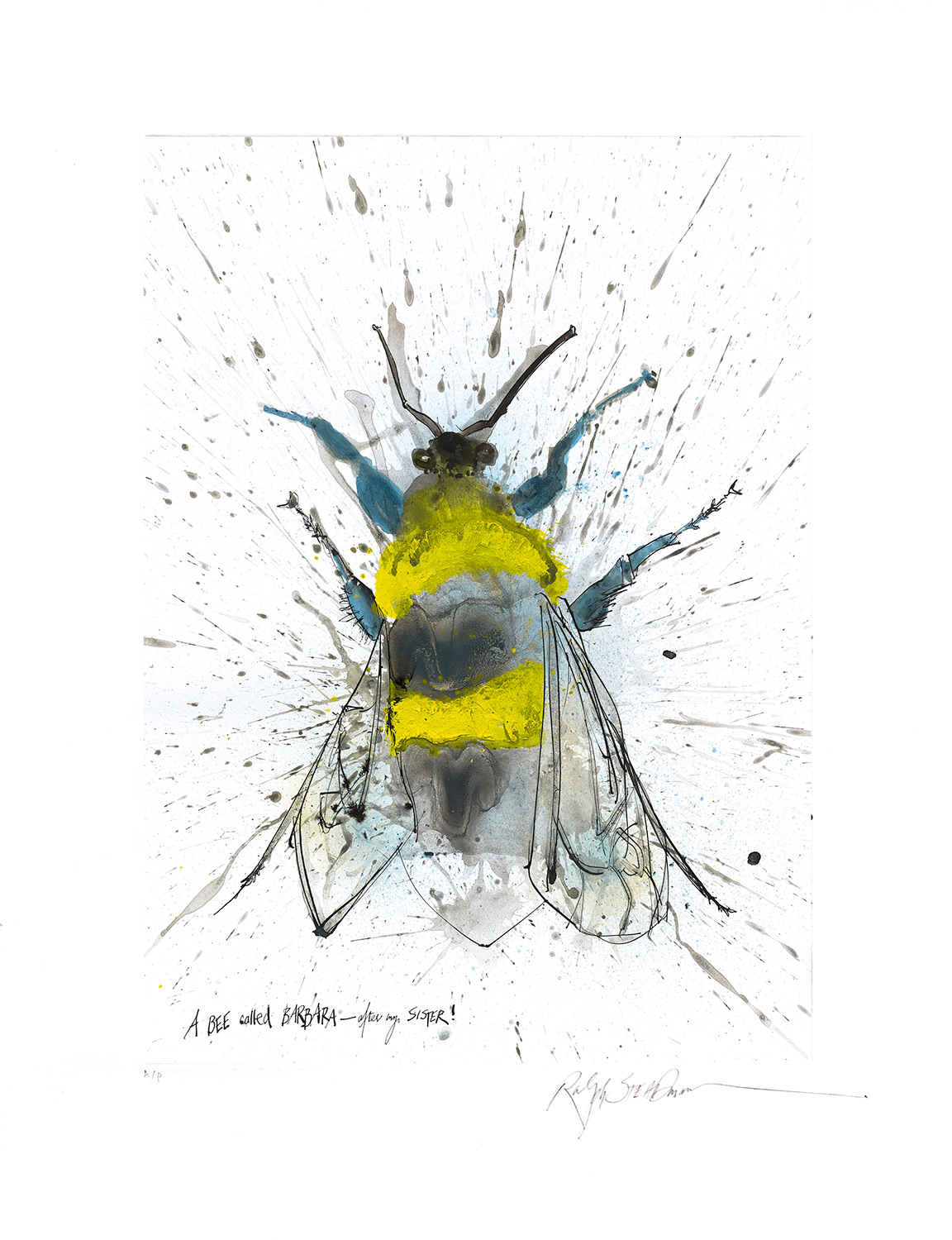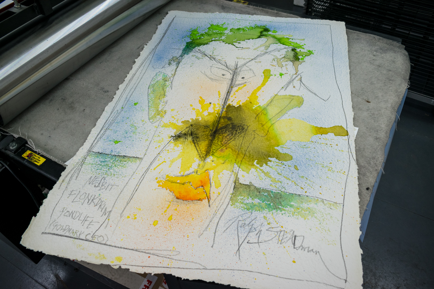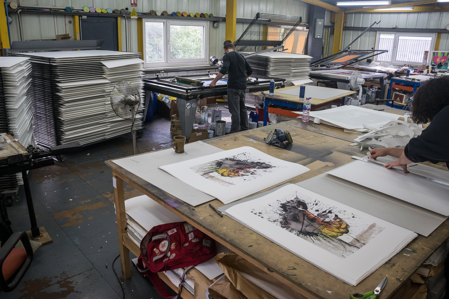 We recently worked with the iconic Illustrator Ralph Steadman and filmmaker Ceri Levy to produce a series of hand de-bossed digital prints based on their book ‘Critical Critters’